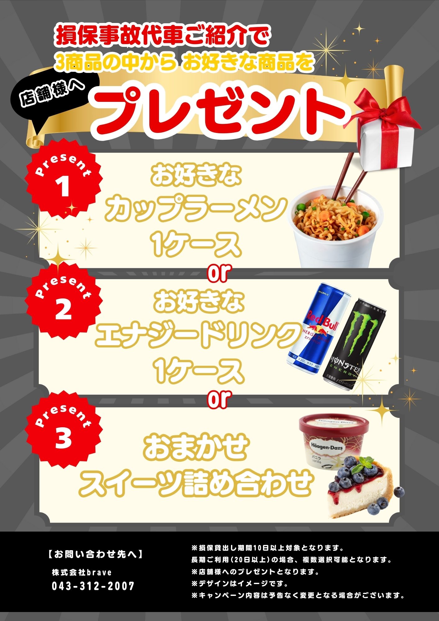 3商品の中からお好きな商品を店舗様へプレゼント。