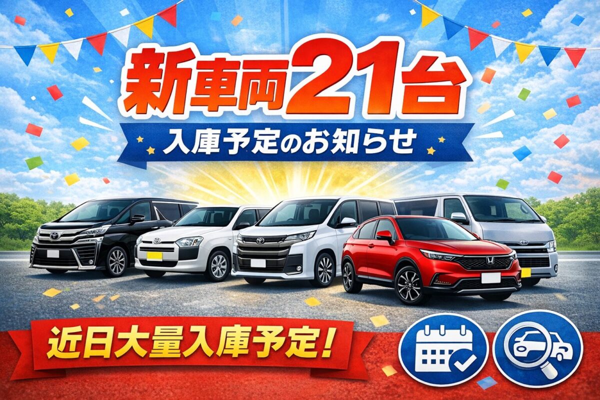 この度、当社では 新たに21台のレンタカー車両を追加で入庫予定 となりましたので、お知らせいたします。より多くのお客様に、快適で選びやすいレンタカー体験をご提供いたします!